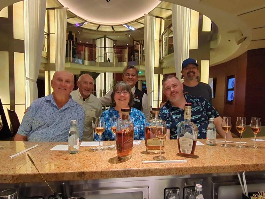 The entertainment on board was excellent, the Reflections theater hosted, musicians, dancers, comedy and the “cheesiest” hypnotist ever. There were art auctions, dance parties, volleyball contests, game show style contests… I won a free, on board excursion, playing a True False game. Fortunately and unfortunately the only excursion that was available in a time slot I could attend was the Whistling Pig Whiskey Tasting. I represented Women Well! Kudos to Dino the Sommelier. Great fun! Very informative and Tasty too!